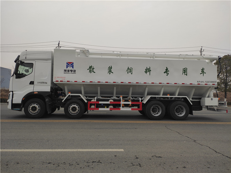 國六柳汽前四后八40方液壓散裝飼料車車輛詳細參數(shù)配置: